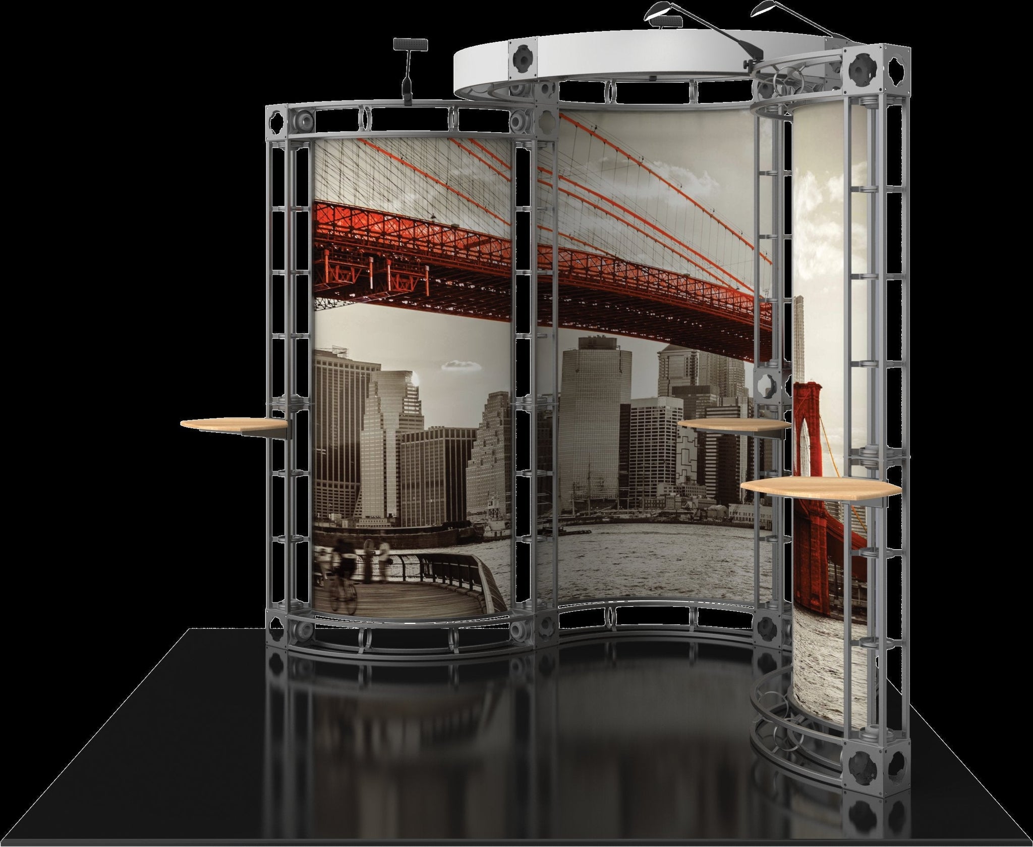 The Orbital Express trussing collection features collapsible heavy-duty steel truss framing, easy toolless assembly, custom printed graphics, and a modular system allowing for endless configuration possibilities. Graphics can be printed on full color dye-sublimated polyester fabric or UV printed on rollable magnetic receptive medium, and can be easily replaced with new art for future events and uses. Our truss displays are offered in 10x10, 10x20, 20x20 and larger configurations that can fit any trade show booth space. A variety of hard molded shipping cases provide protection for your orbital truss hardware and graphics during shipping and in storage. Read more...