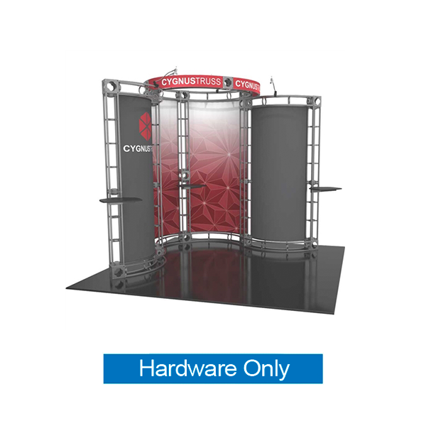 This truss display system is part of the Orbital Express Truss family which includes hundreds of professionally designed exhibit kits, pre-designed or completely custom, and come in a variety of booth sizes and configurations that are easily customized. Adding accessories, such as lighting, counters, shelving, TV monitor mounts and hanging racks, can provide for even more customization of your trade show booth. This versatile truss system can be reconfigured in many unique combinations using parts include in the kit and/or by adding more truss sections, thus easily transforming a 10x10 trade show booth to match a larger exhibit space.
