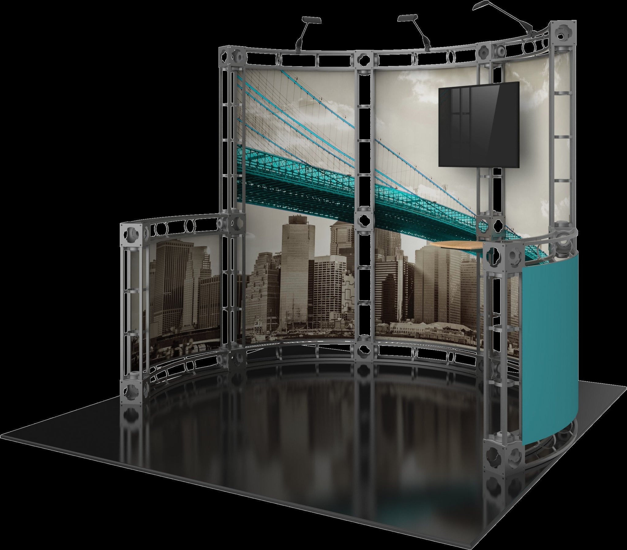 The Orbital Express trussing collection features collapsible heavy-duty steel truss framing, easy toolless assembly, custom printed graphics, and a modular system allowing for endless configuration possibilities. Graphics can be printed on full color dye-sublimated polyester fabric or UV printed on rollable magnetic receptive medium, and can be easily replaced with new art for future events and uses. Our truss displays are offered in 10x10, 10x20, 20x20 and larger configurations that can fit any trade show booth space. A variety of hard molded shipping cases provide protection for your orbital truss hardware and graphics during shipping and in storage. Read more...