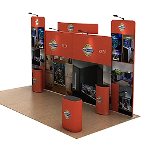 your trade show booth. Mix and match display panels, TV mounts, headers, lights, feet and more, to create a display