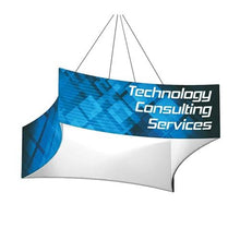 The 20ft Curved Square shaped overhead hanging banners can be printed single-sided or double-sided with the custom graphics of your choosing. Select from 2ft, 3ft, 4ft, 5ft, and 6ft banner heights to complement your trade show booth or marketing space.
