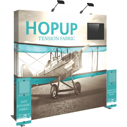 Hopup displays are ideal for step and repeat backdrops, stage backwalls, career or job fair, college fairs, church popup walls, or anywhere else where you want to stand out. They are also perfect for trade show booths, from 10x10ft inline to 20ft, 30ft and larger exhibits. Hopup exhibits are available as tabletop displays and at heights of 5ft, 7.5ft or 10ft tall. Hopup tension fabric display and exhibit are a low cost, high value solution to your trade show or event needs.